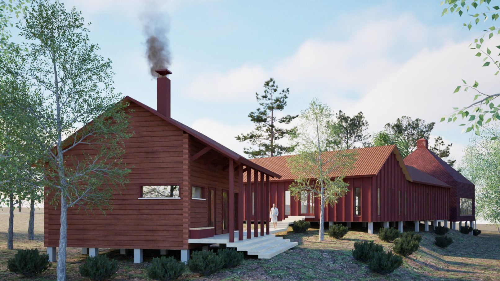 Retreat center SNOAN is a place for silence, devotion, and rest in Lappvik, Hanko, whose oldest building parts date back to the 19th century. We were commissioned to design a new building to replace the old accommodation and chapel, which no longer meet today’s needs. The aim is to preserve the area’s original character, as well as its connection to the old cottage.