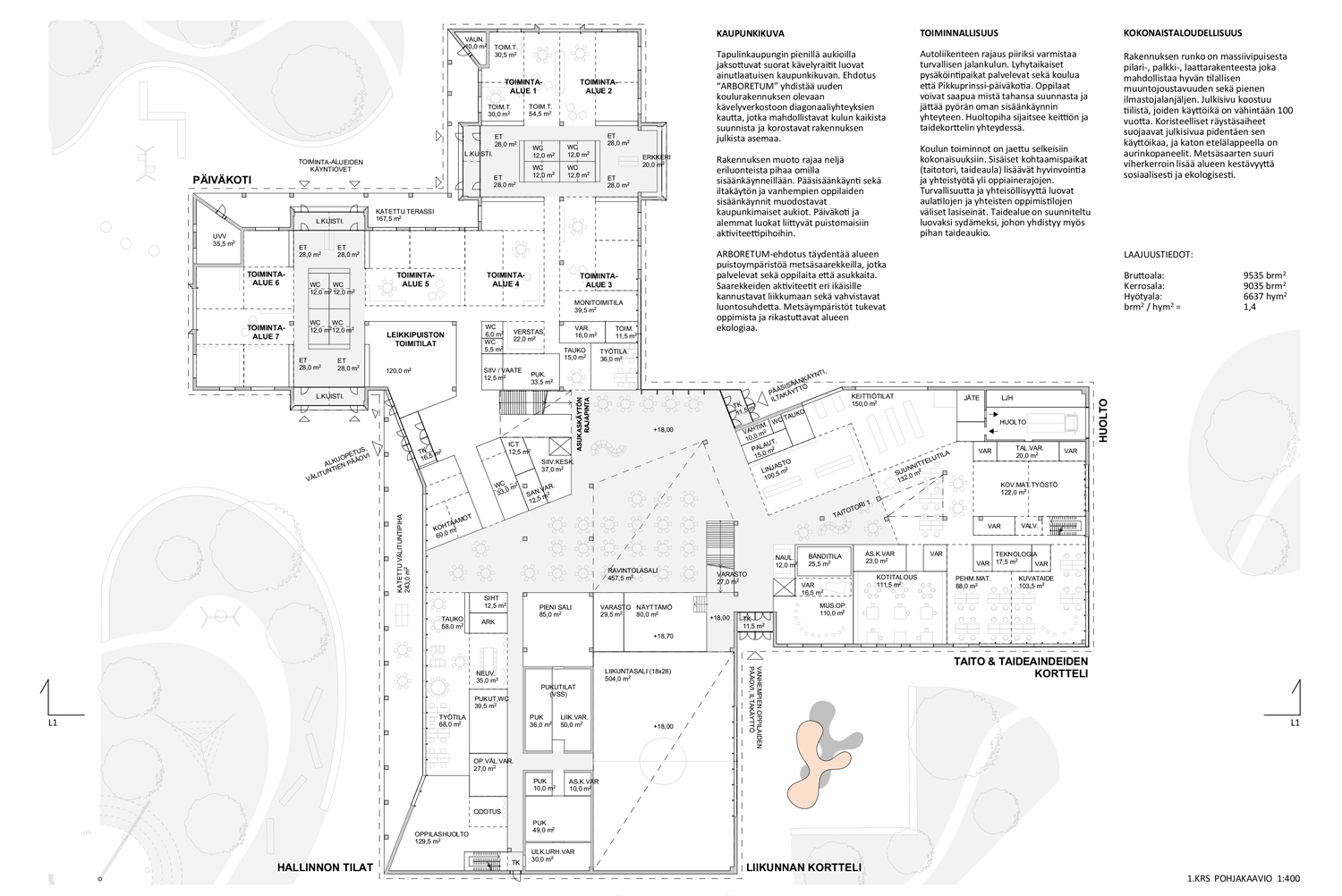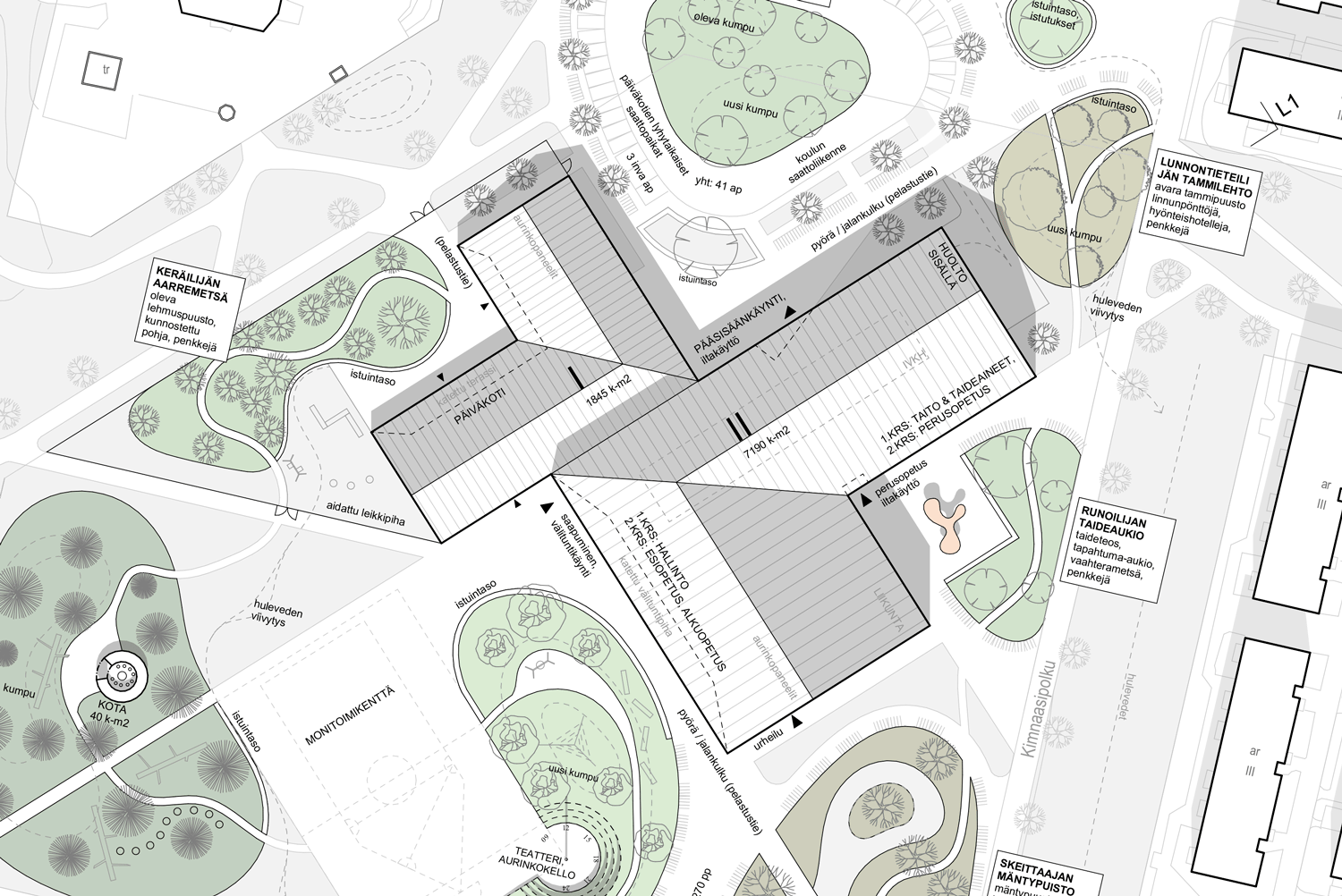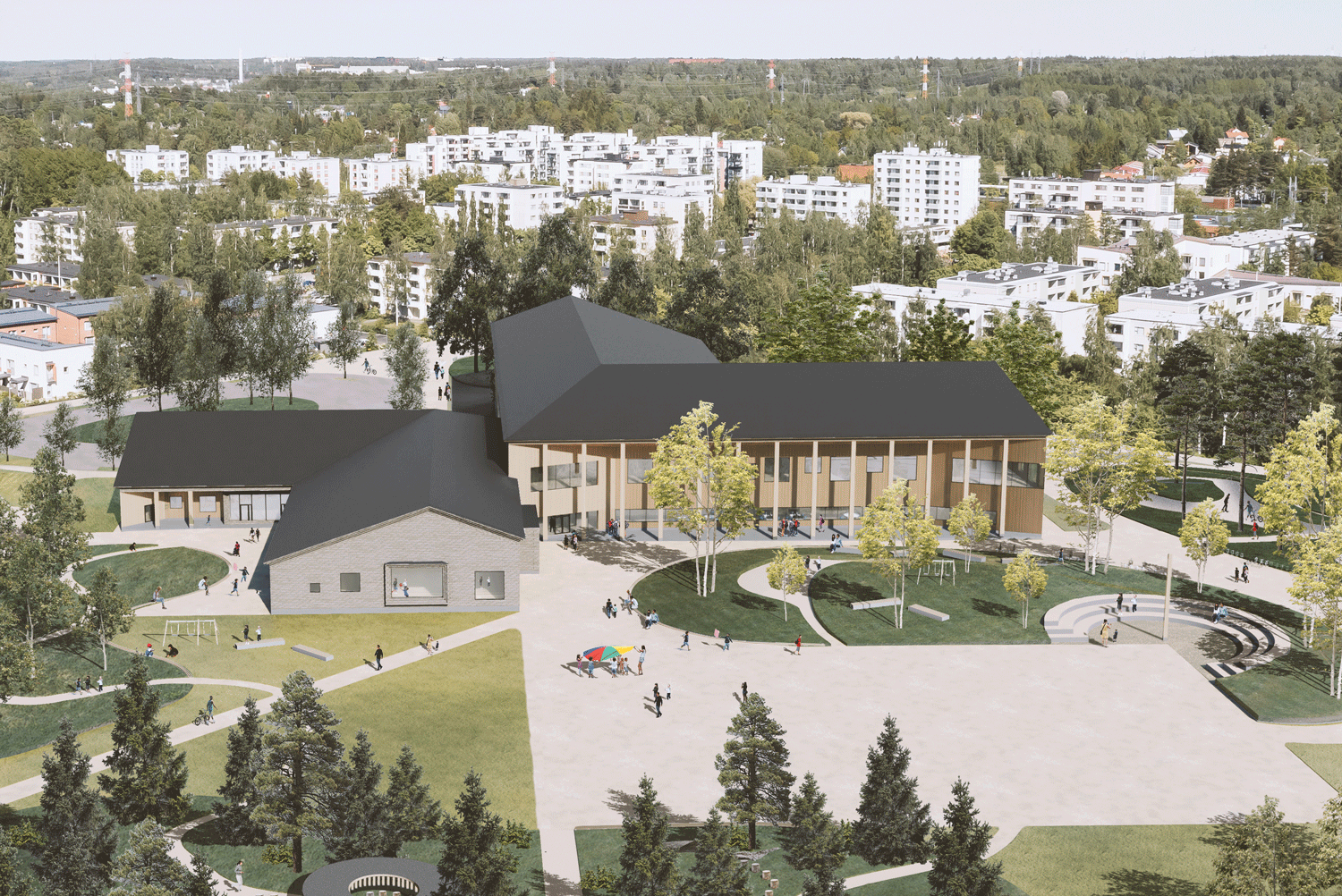 Träskola och dagis koncept för Tapulinkaupunki i Helsingfors.