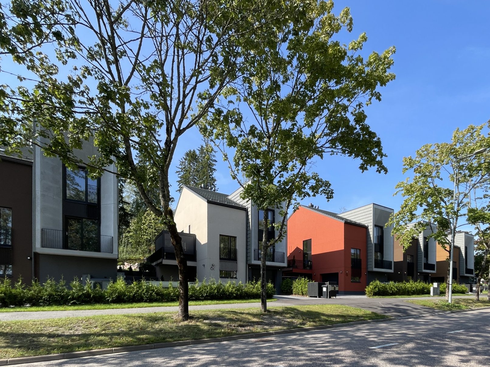 Fem urbana villor på en sluttande plats intill en skog. Designen är inspirerad av den traditionella europeiska townhouse-typologin med en modern twist. Terrasserna öppnar sig mot skogen och ger en lugn plats i ett tätt urbana sammanhang.