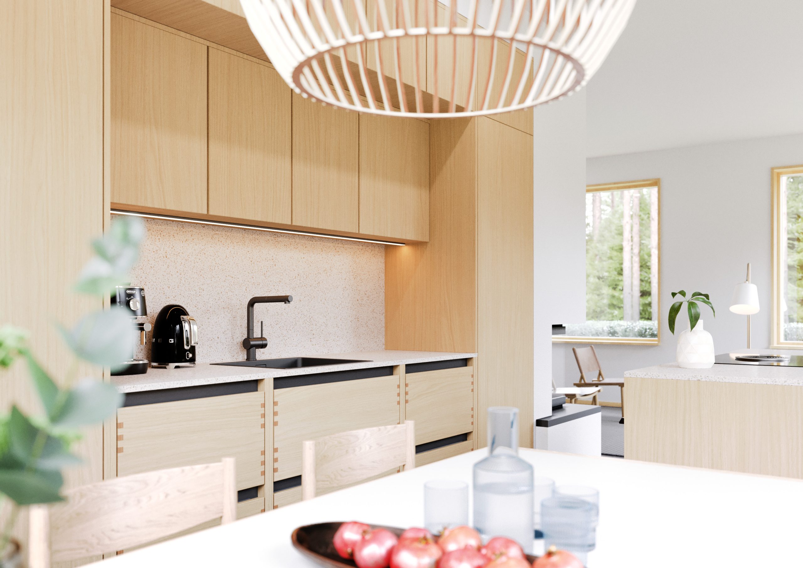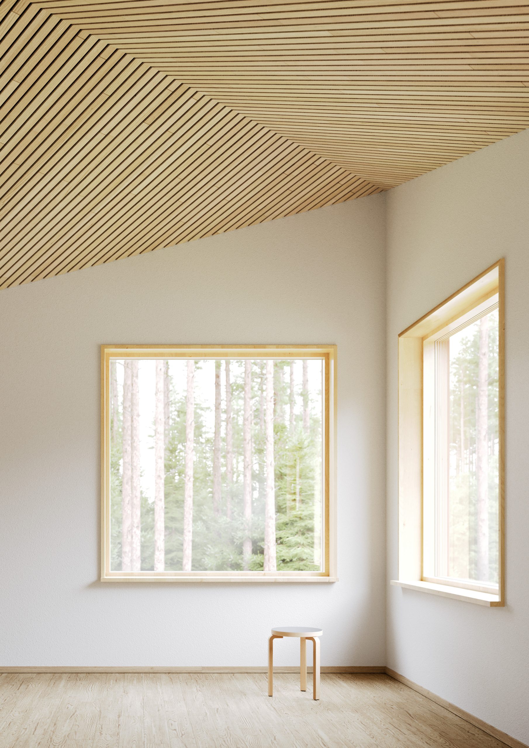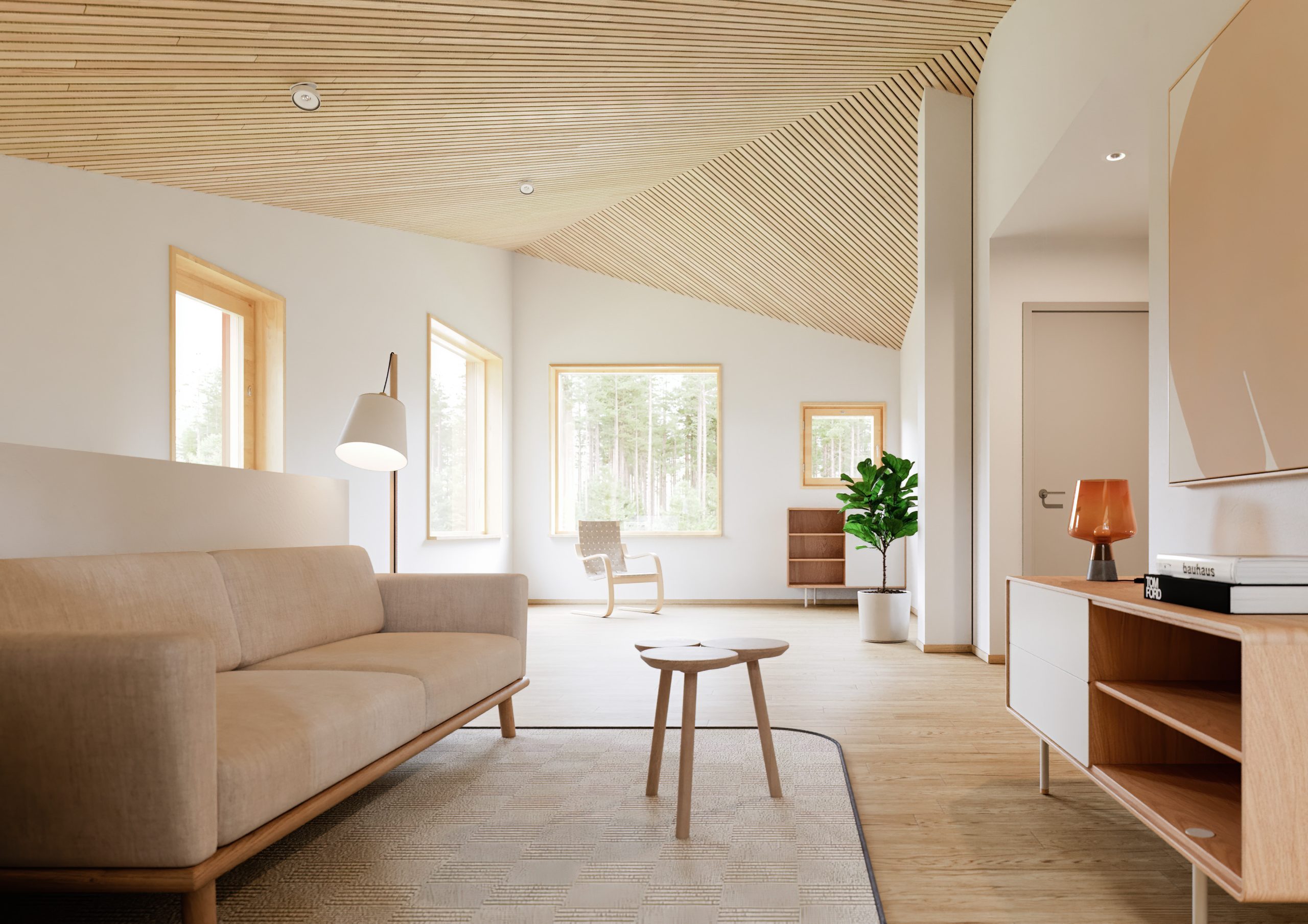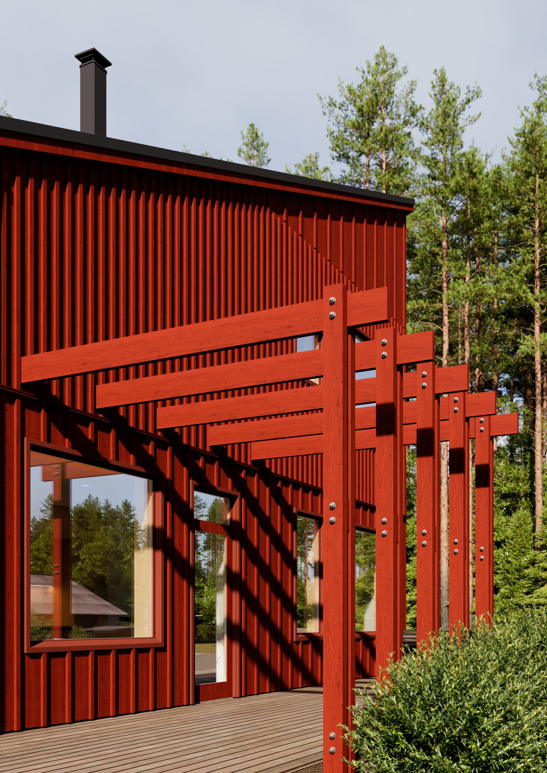 Vekabackassa olemme tehneet modernin tulkinnan pohjoismaisesta puutaloarkkitehtuurista. Vinoharjakatto antaa rakennukselle ainutlaatuisen arkkitehtuurin sekä sisä- että ulkopuolella.