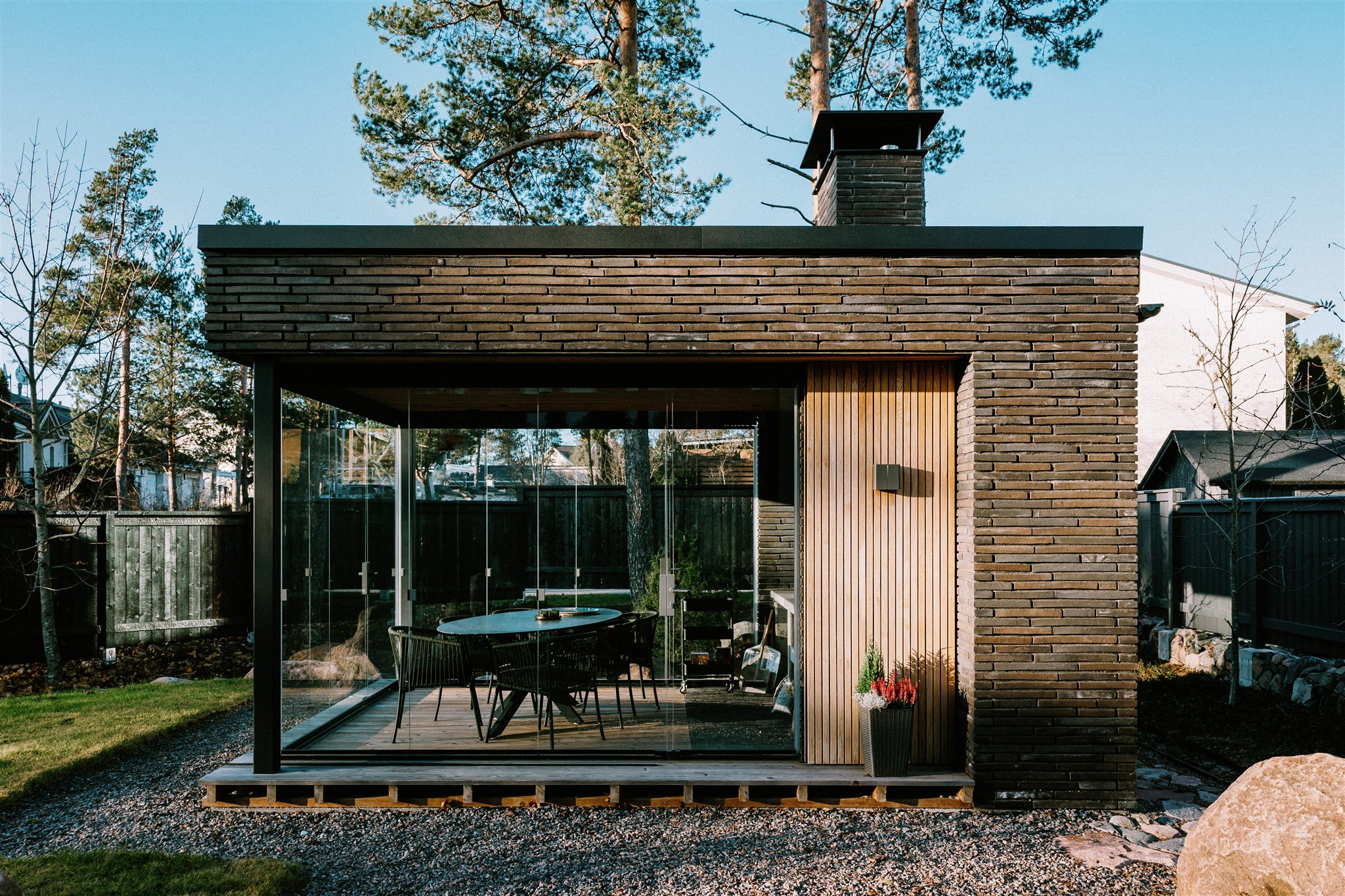 Villa E is a striking composition of raw materials and refined spatial geometry. The project reflects a contemporary Nordic aesthetic, where material honesty and craftsmanship define both its form and function. Designed as a private residence, the house balances openness with privacy, creating an intimate yet expansive dialogue between interior and exterior spaces.